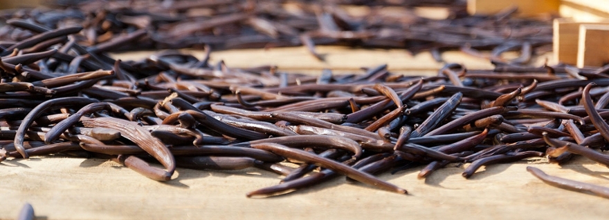 Headerafbeelding: vanillebonen liggen te drogen op het eiland Réunion. Foto: Ekrem Canli CC BY-SA 3.0.