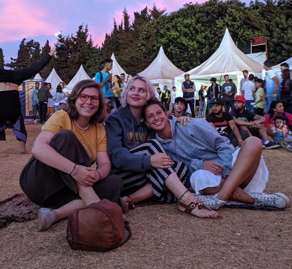 ‘Corona leek aanvankelijk nauwelijks te spelen in Marokko, maar aan deze luchtige sfeer kwam snel een einde toen de Marokkaanse overheid op 14 maart abrupt de grenzen sloot voor nieuwe buitenlanders en we ook moeilijk het land uit konden. Omdat corona door Europese toeristen naar Marokko was meegenomen, brachten veel Marokkanen het virus in verband met Europa. Dat weekend werden we opeens op straat nageroepen met ‘corona!’ Dat was wel vervreemdend, ook al was het natuurlijk veel milder dan de agressie waar veel Aziaten in het westen mee te maken kregen. Na diverse gecancelde vluchten konden we mee met een Franse repatriatievlucht naar Parijs. Enerzijds was dat een opluchting, maar ik vond het ook erg jammer om halsoverkop Marokko te verlaten, terwijl we er nog maar net anderhalf maand zaten. Gelukkig ging het onderwijs wel online door en heb ik zowel het Marokkaans Arabisch als het Standaard Arabisch goed kunnen leren. Ik wil zeker nog een keer terug naar Marokko als dat weer mogelijk is.’ Foto: Zaza met vrienden op een festival in Casablanca voordat corona uitbrak.