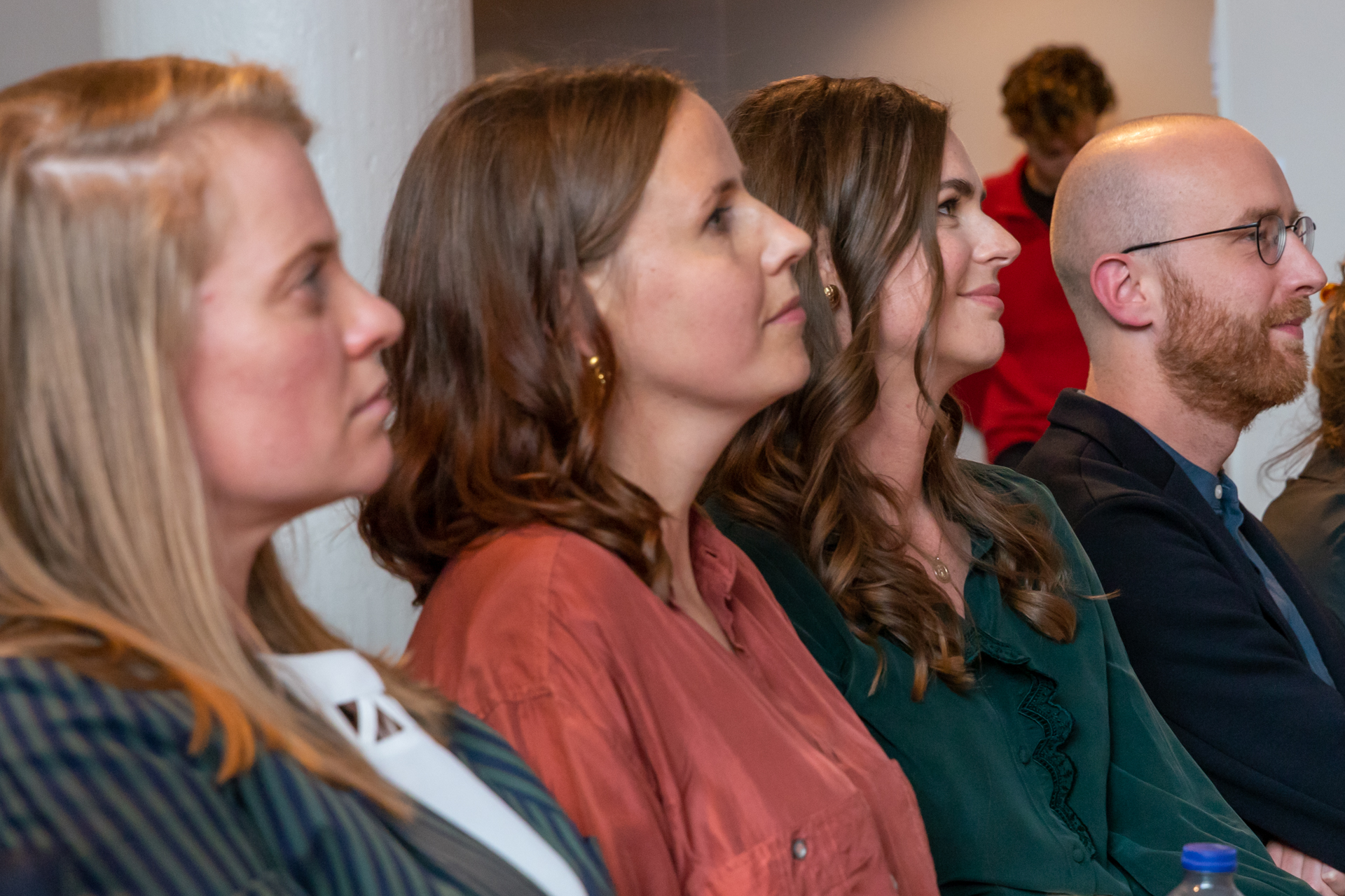 Na Lieke's lezing vormden de drie een panel om vragen te beantwoorden, met moderator Linde van Schuppen (rechts). -