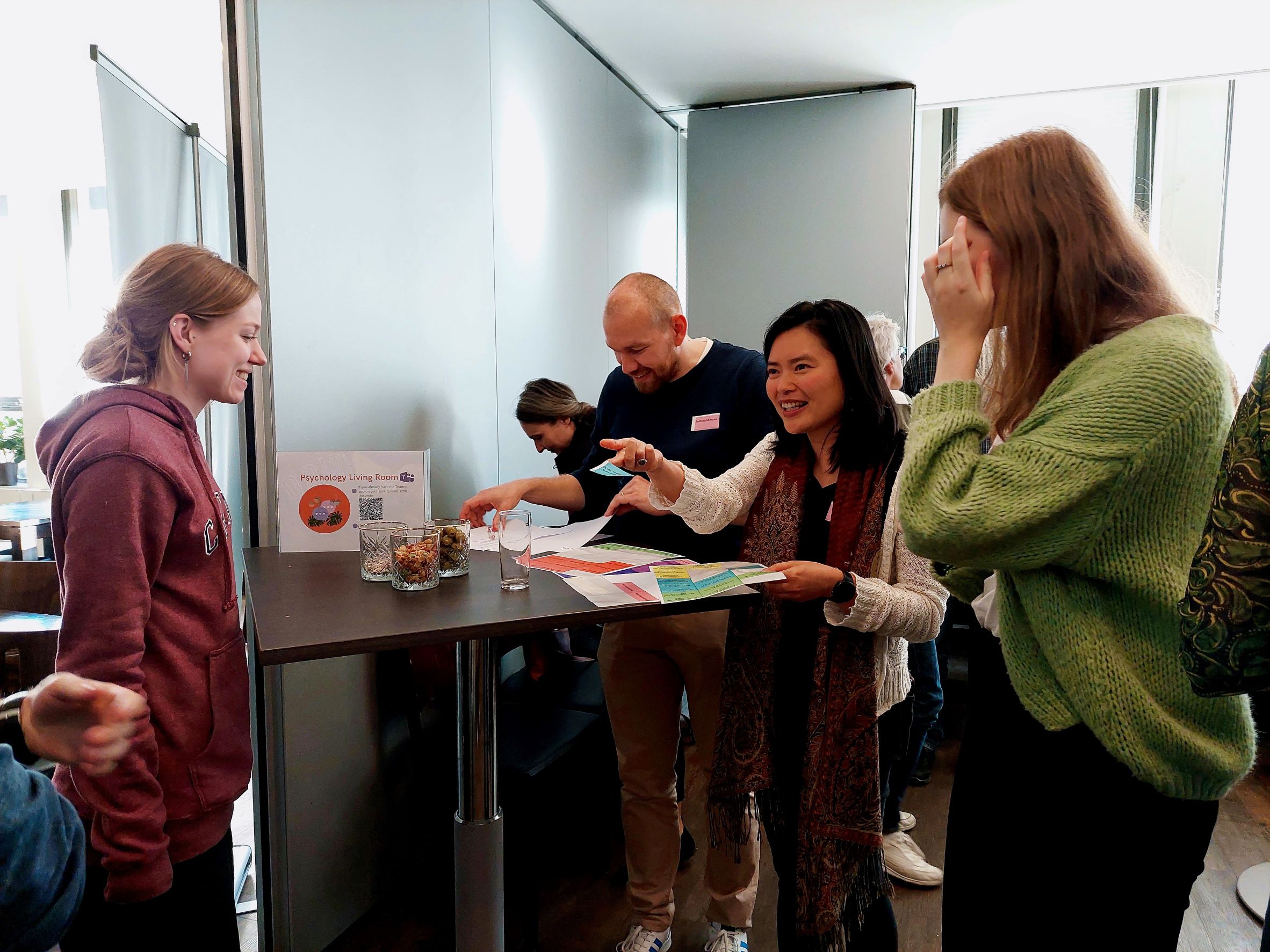 Wierenga sluit de eerste Psychology Connected­­­-sessie af en Michiel van Elk luidt de borrel in. Met een biertje of fris praten zo’n vijftig collega’s na. Niet alleen over het klimaat, maar ook over hoe het is om als PhD’er op de universiteit te beginnen en of iedereen Leids Ontzet heeft overleefd.