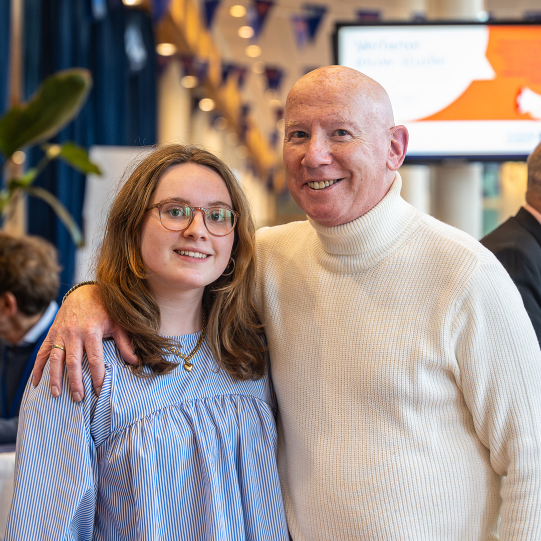 Egbert Wientjes (geschiedenis en economie, afgestudeerd in 1985) & Fee Wientjes (wil geneeskunde of psychologie studeren)