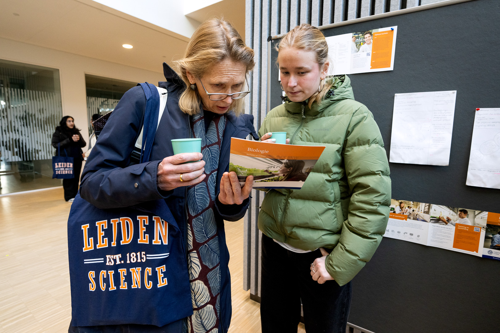 Veel vragen zijn er ook over een nieuwe studie, Science for Sustainable Societies. Het is een studie die kennis en vaardigheden biedt om de duurzaamheidsuitdagingen op de planeet aan te gaan. Phoenix Kulkarni uit Hilversum heeft zich dat net laten uitleggen en denkt, met een universiteitstas en een studiefolder in de hand, dat dit wel eens iets voor haar zou kunnen zijn. ‘Ik kwam voor biologie, dat is een leuk vak. Maar ik vind sociale wetenschappen ook interessant. Science for Sustainable Societies is daar een goede combinatie van. Mooi dat er zoveel keuze is op deze open dag, je kunt iets zoeken dat echt bij je past.’