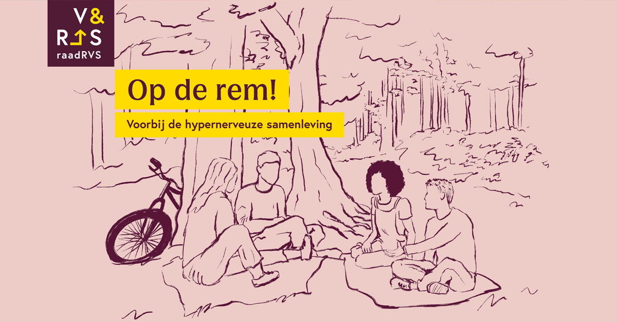 ‘Het recente ‘Op de rem-rapport’ van de Raad voor Volksgezondheid en Samenleving (RVS) benadrukt dat mentale klachten zoals stress, prestatiedruk, depressie, en burn-out niet alleen een individuele verantwoordelijkheid zijn. Opvallend en belangrijk is dat, zoals in een Trouw-artikel stond in de reactie op het rapport, ook ‘sociale angsten’ in dit lijstje stond— een probleem dat bij jongeren veel voorkomt (denk bijvoorbeeld aan de toename van belangst). Het rapport pleit er onder anderen voor om meer te richten op en ruimte te geven aan verbinding.