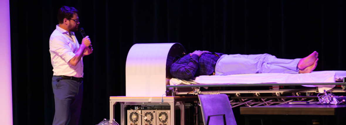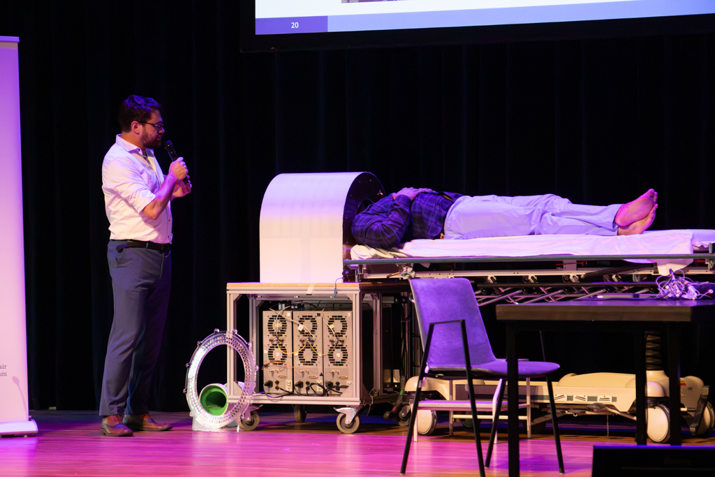 De dag begon met een reis door de tijd. Dr. Mieneke te Hennep vertelde hoe er vroeger gedacht werd over de hersenen en hersenziekten. Bij de demonstratie van een live neurologisch onderzoek, met behulp van MRI en EEG, werd duidelijk wat een grote technologische stappen er sindsdien zijn gemaakt.
