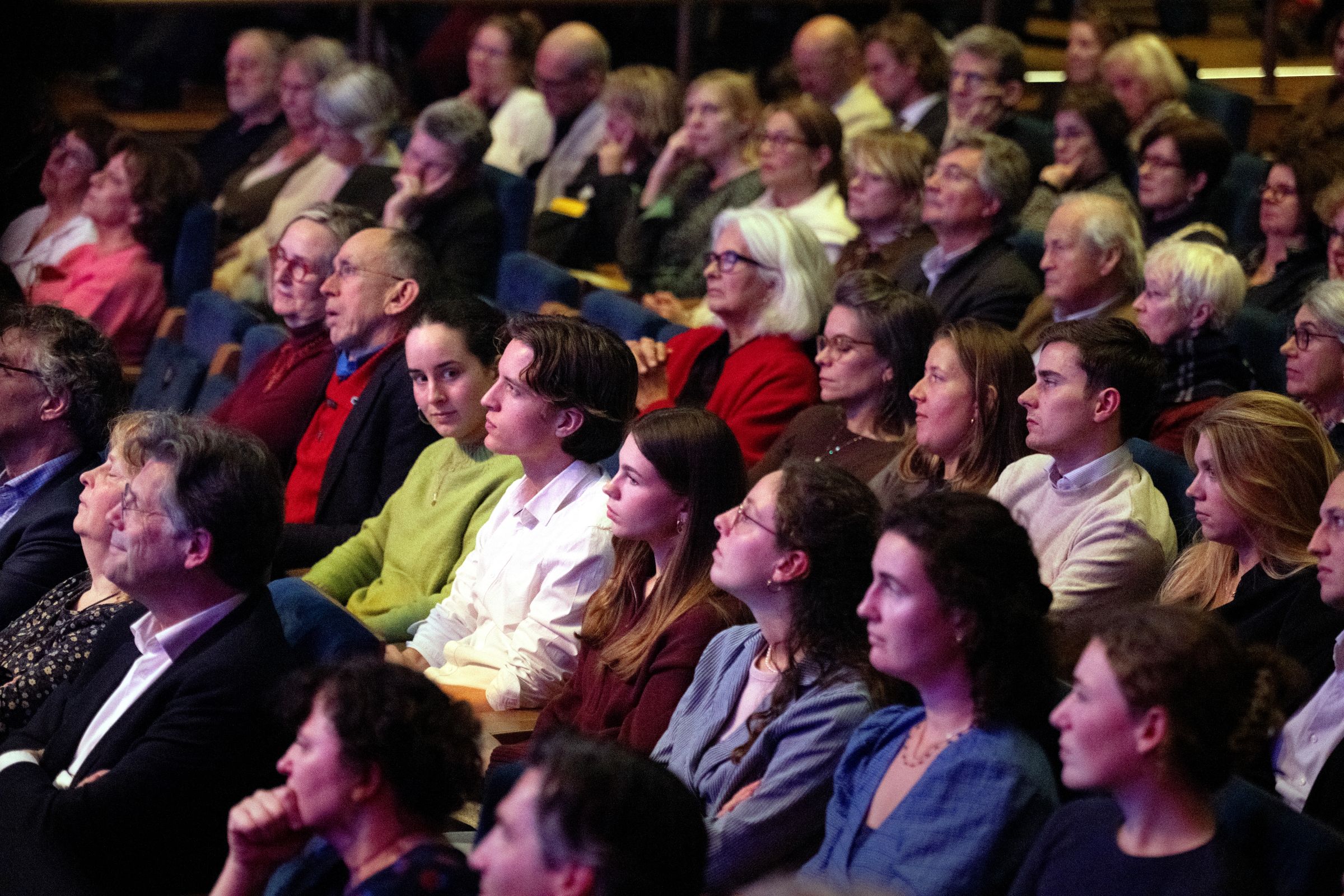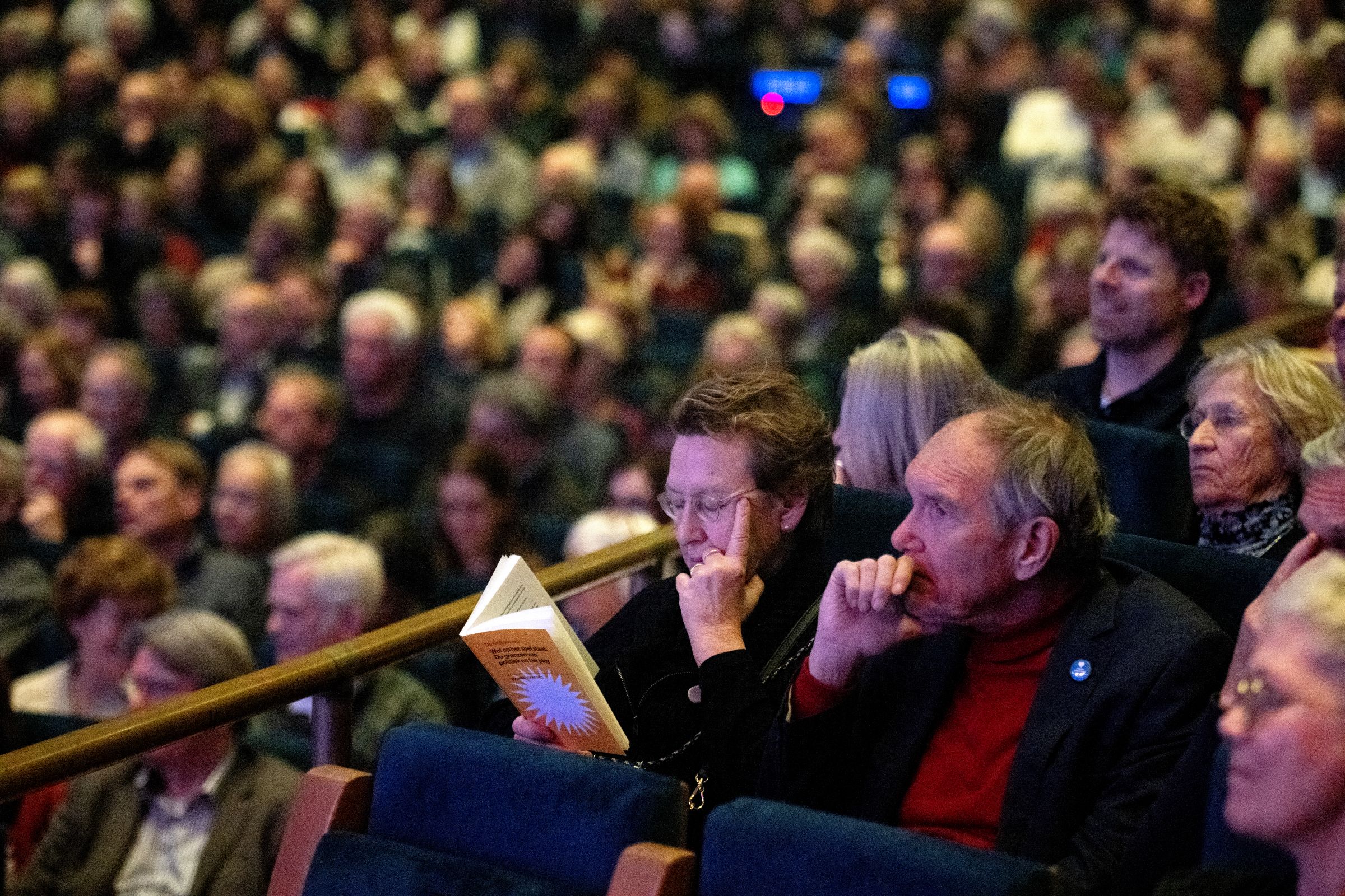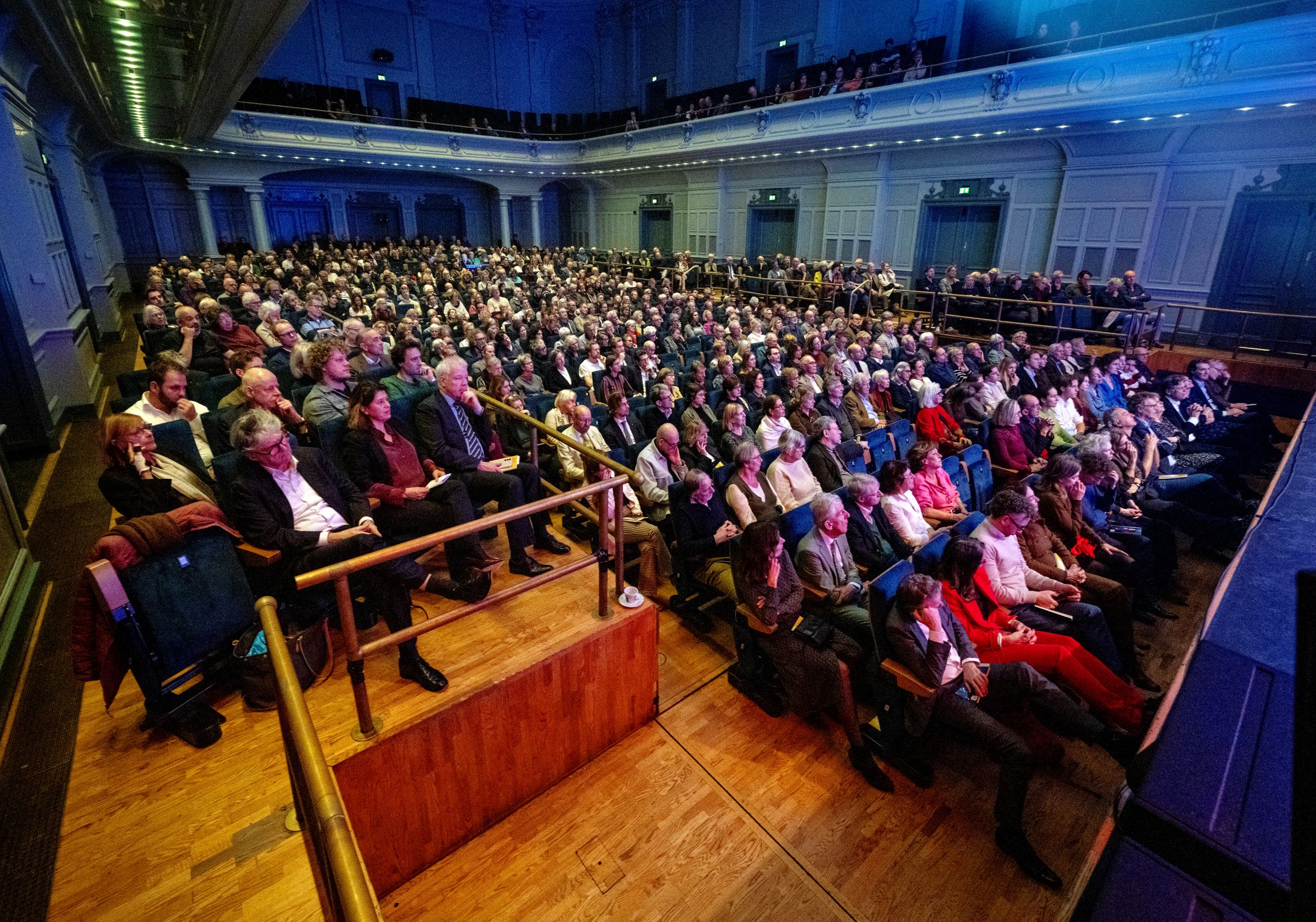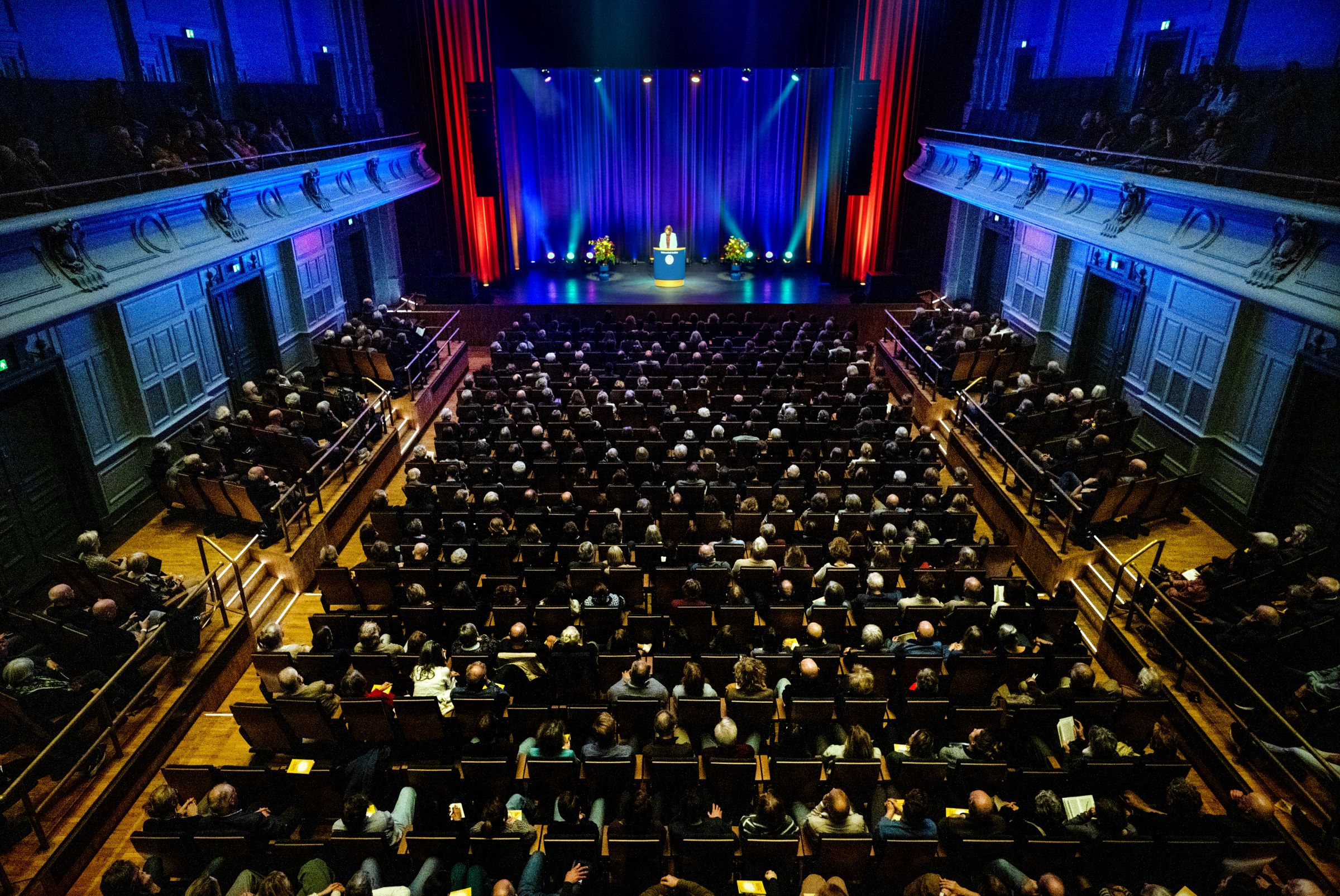 In een volle Stadsgehoorzaal hield filosoof en Eerste Kamerlid Daan Roovers de 54e Huizingalezing. Het werd een warm pleidooi voor een politiek waarin niet alleen gewonnen, maar ook gepraat en gespeeld wordt.