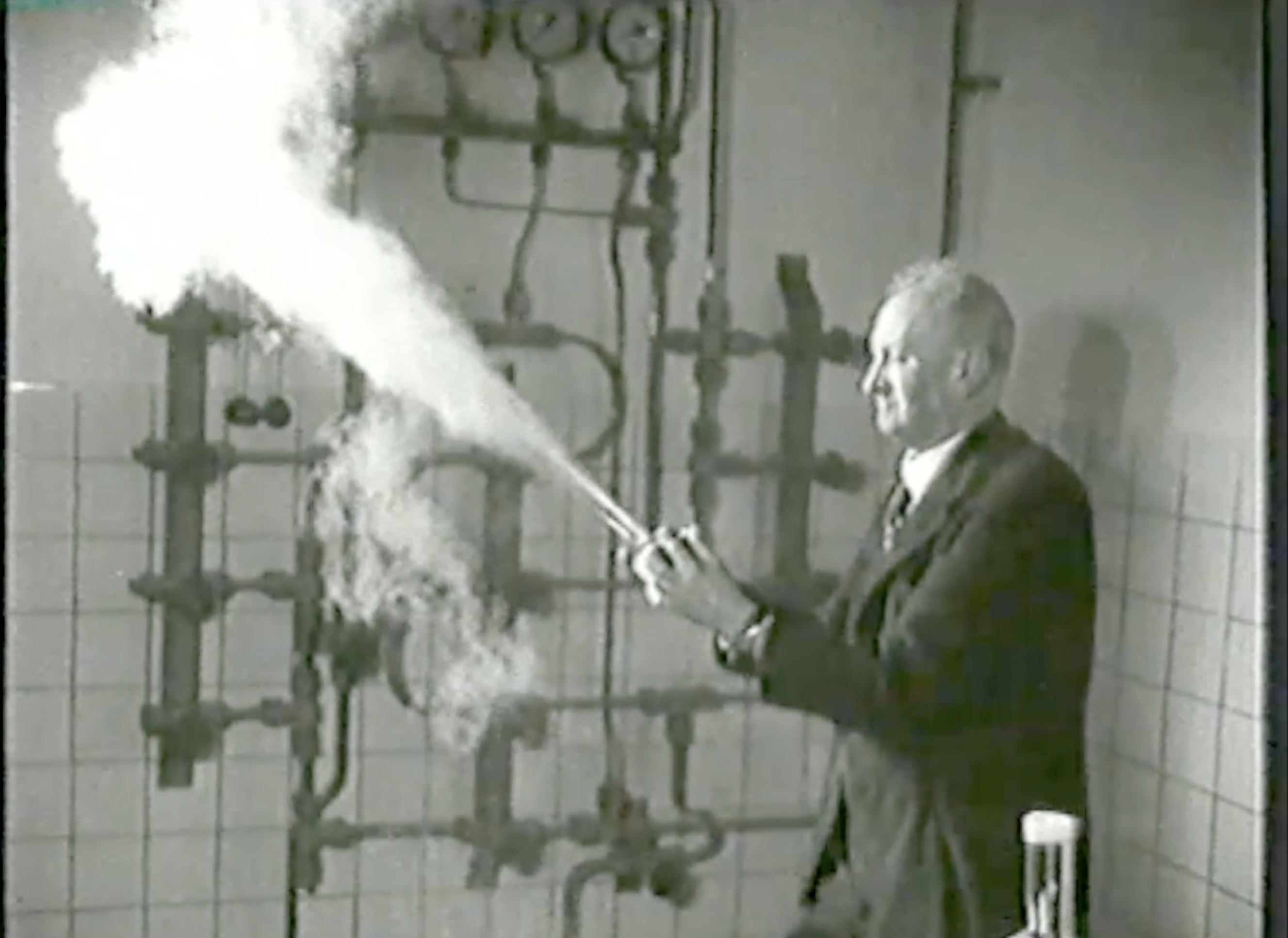 In het Kamerlingh Onnes Gebouw in de jaren 50. (still uit de film) -