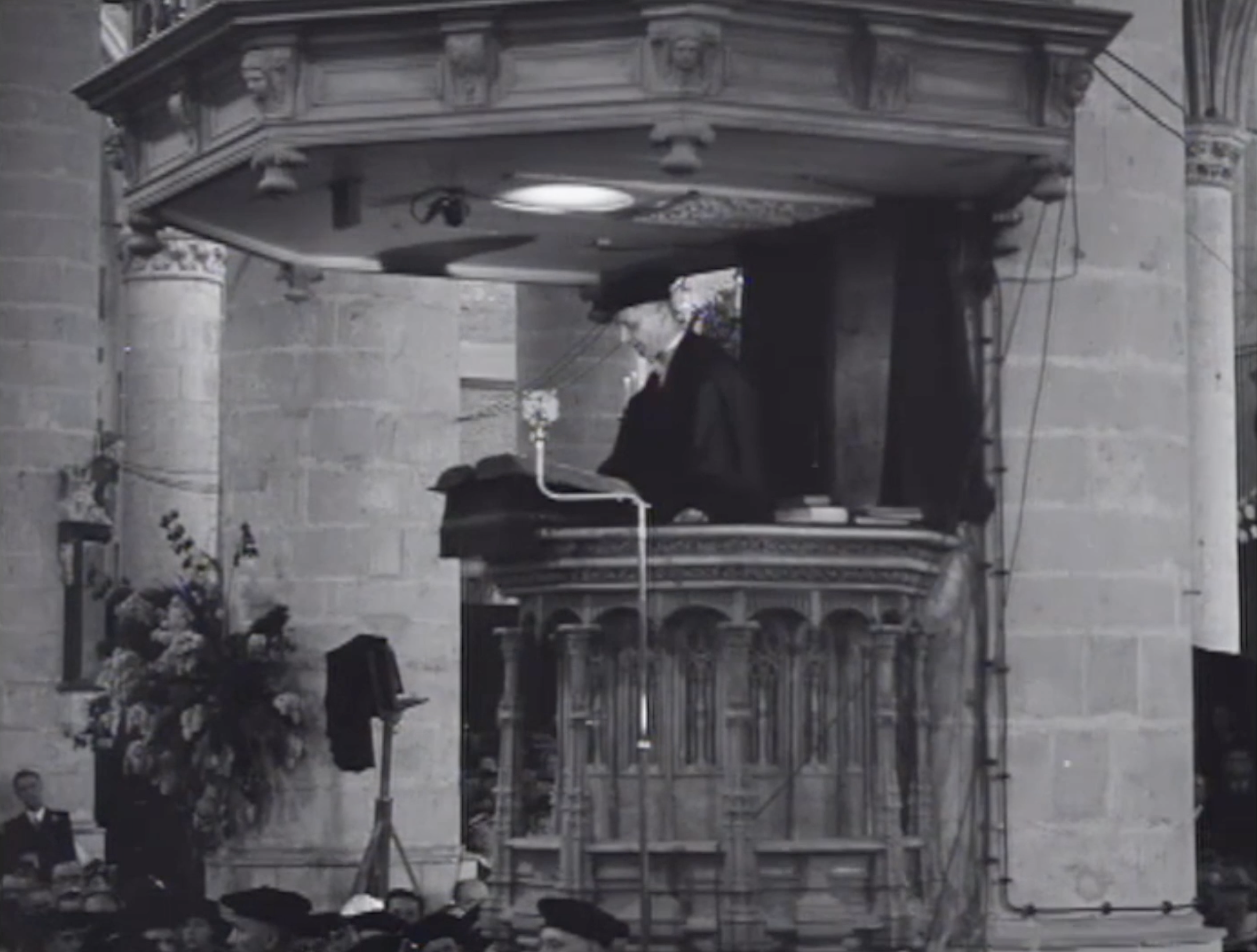 Een hoogleraar in de Pieterskerk. (still uit de film) -