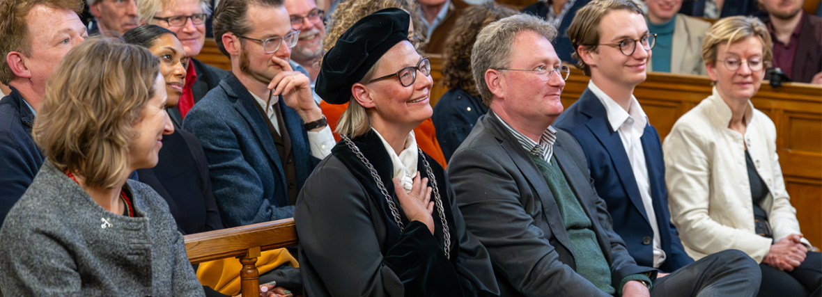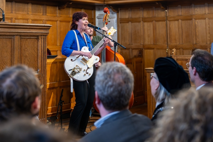 Diverse andere sprekers noemden ook Bijls rol als verbinder. Zoals natuurkundige Julia Cramer, oud-voorzitter van de Young Academy Leiden en studentassesoren Tim van Surksum en Mick de Kruijff die haar zichtbaarheid tijdens demonstraties waardeerden. FGGA-decaan Koen Caminada sprak mede namens de Raad van Decanen. Hij refereerde aan het nieuwe togaprotocol dat onder haar rectoraat tot stand kwam: ook niet-hoogleraren in de promotiecommissie mogen tegenwoordig in toga. ‘Van een universiteit van hoogleraren werd de universiteit meer van ons allemaal.’ Tussen de toespraken door was er ook een swingend intermezzo. Psycholoog Marjolein Fokkema en immunoloog Koen van der Maaden speelden het nummer ‘Loosen Up That Model!’ over de wondere wereld van de algoritmes.