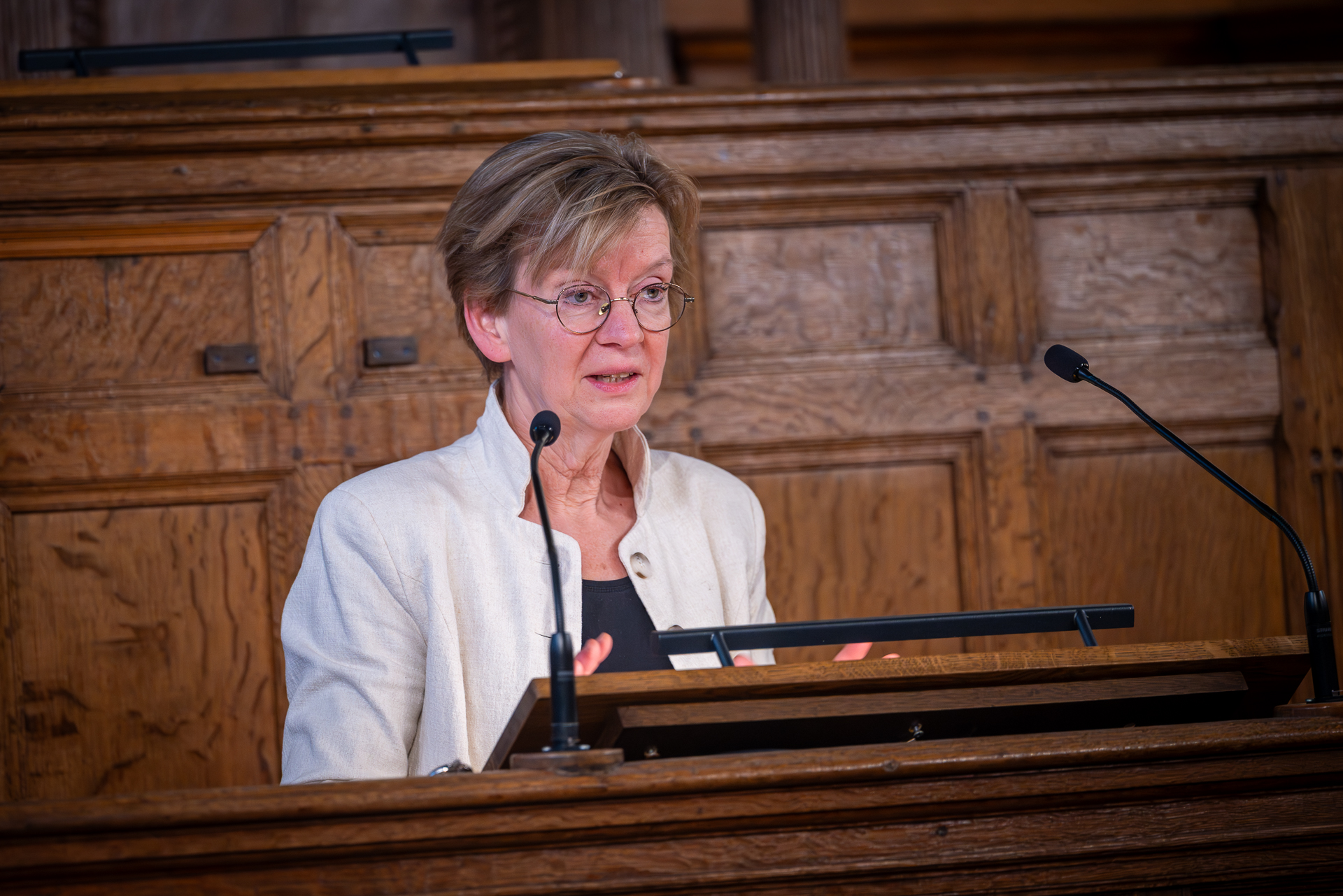 Bijna tien jaar stond Hester Bijl aan het roer van de Universiteit Leiden. Vanaf 2016 als vicerector en sinds 2021 als rector magnificus. Een historisch moment: voor het eerst in 445 jaar kreeg Leiden een vrouwelijke rector. Op 15 januari wordt ze rector van de TU Delft en is ze daar wederom de eerste vrouw in die functie. Wetenschappers, studenten en natuurlijk Bijl zelf keken terug op een roerig decennium en grote thema’s die speelden in onderzoek en onderwijs. ‘Vandaag zetten we de spotlights op jou en de onderwerpen die jij, Hester, belangrijk vindt’, opende presentator Renée Merkx, directeur Strategische Communicatie & Marketing.