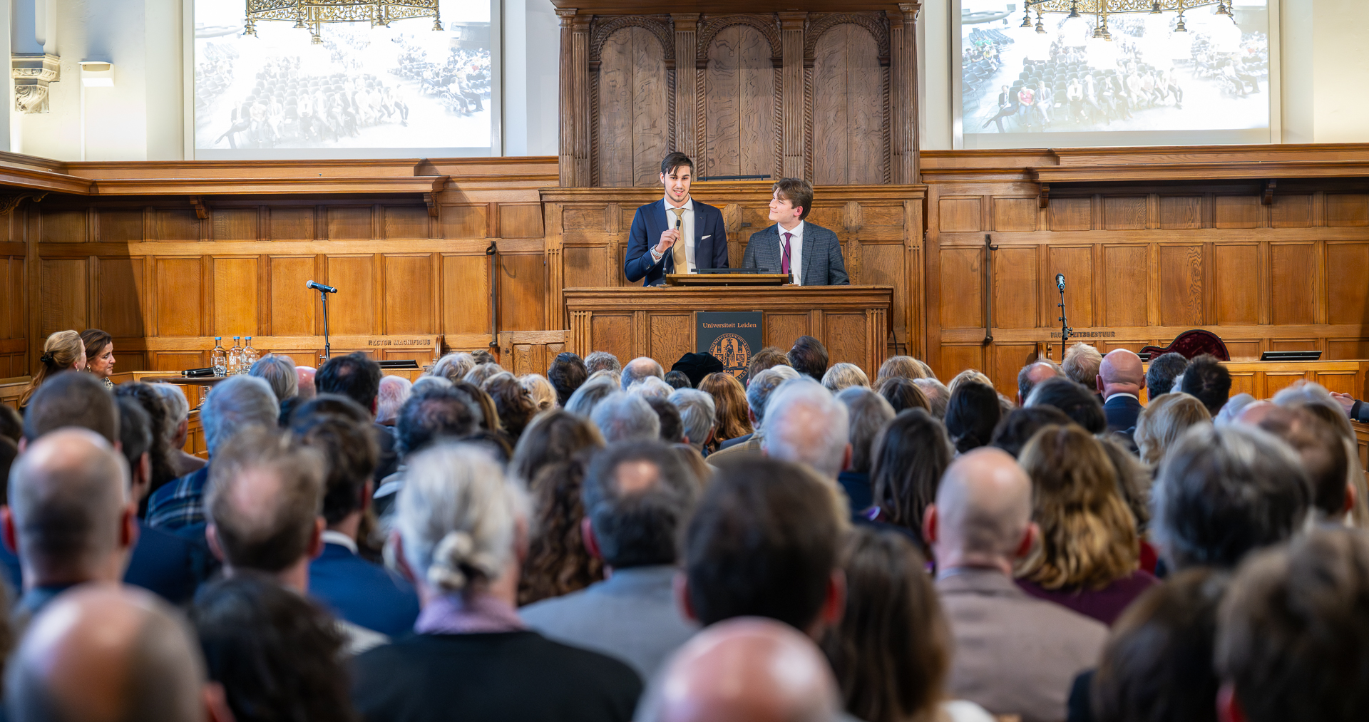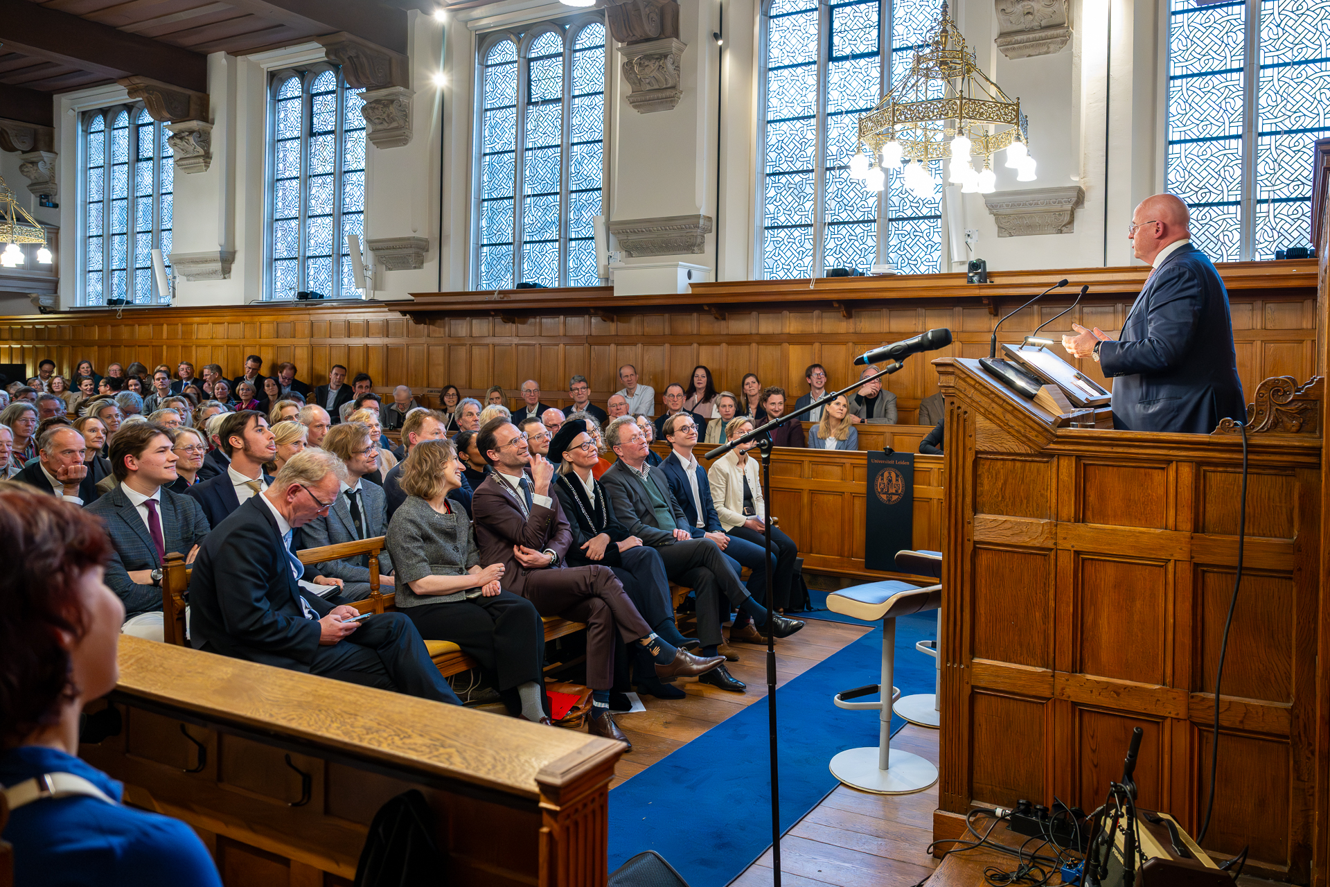 De relatie met de woelige samenleving kwam ook terug in de toespraak van universiteitshistoricus Pieter Slaman. Hij had het over het tweede speerpunt van Bijls bestuur: academische vrijheid. ‘Rustig te midden van woeste golven’, was de lijfspreuk van stichter Willem van Oranje. ‘Zo zag hij ook de universiteit. Hier mogen visies op elkaar botsen en natuurlijk is dat een recept voor gedonder.’ Slaman wees op de vele maatschappelijke conflicten die de universiteit eerder raakten, zoals de godsdiensttwisten en de eeuwige strijd tussen progressieven en behoudenen.