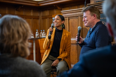 Dat zijn bijvoorbeeld goed onderwijs en de verbinding met de samenleving. Criminoloog Jennifer Doekhie trapte af met haar verhaal hoe zij studenten meeneemt naar de gevangenis en zij daar samen met gedetineerden een college volgen. Dat is voor beide groepen heel waardevol. Studenten duiken de maatschappij in, gedetineerden verdiepen zich en beide groepen leren elkaar kennen. Ze werd door SKO-commissielid Adriaan Rademaker geïnterviewd over het behalen van haar Senior Kwalificatie Onderwijs. Kan zij dat collega’s aanraden? ‘Zeker! Het is heel verfrissend om met ervaren peers ideeën uit te wisselen’, aldus Doekhie.
