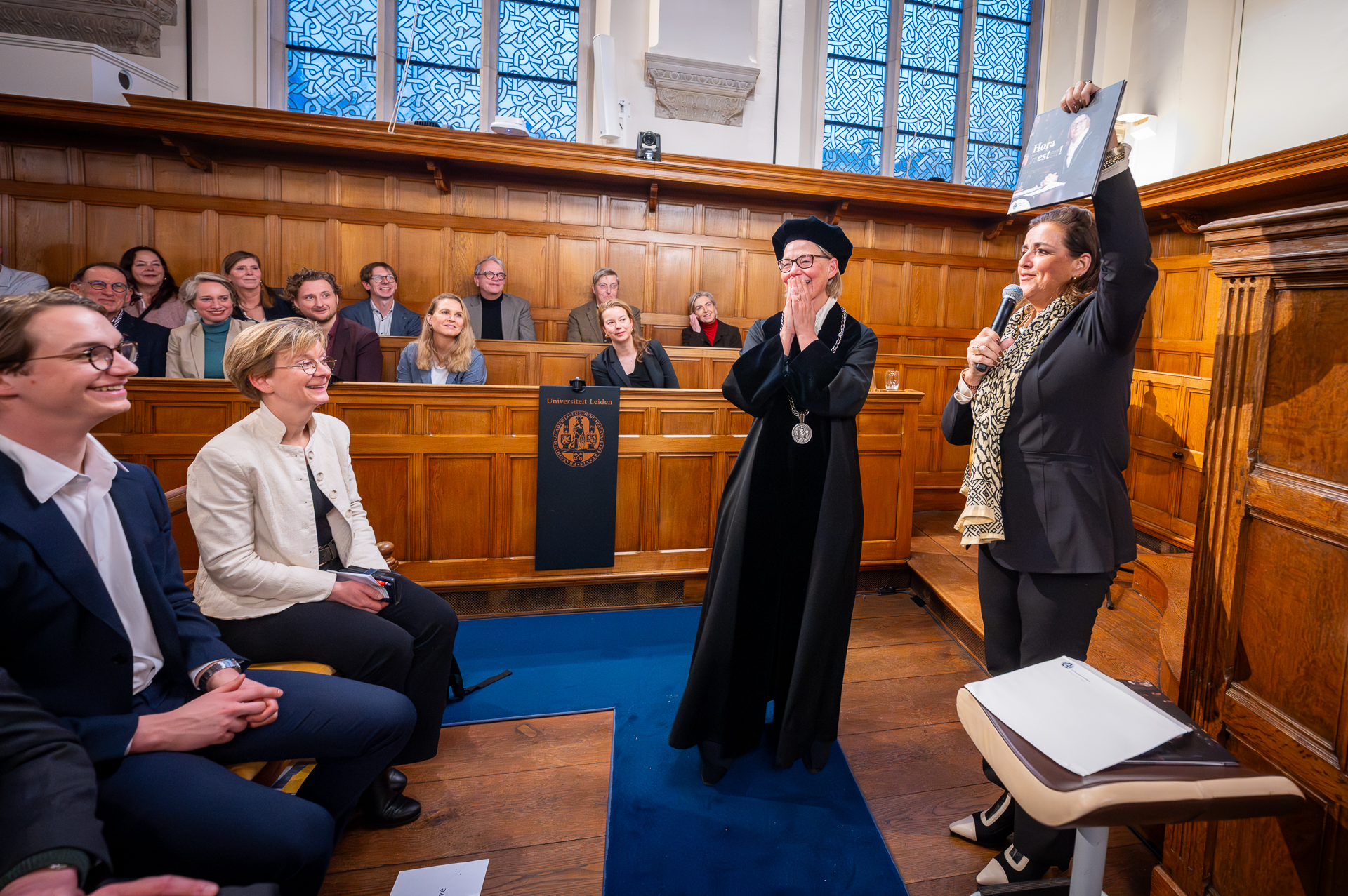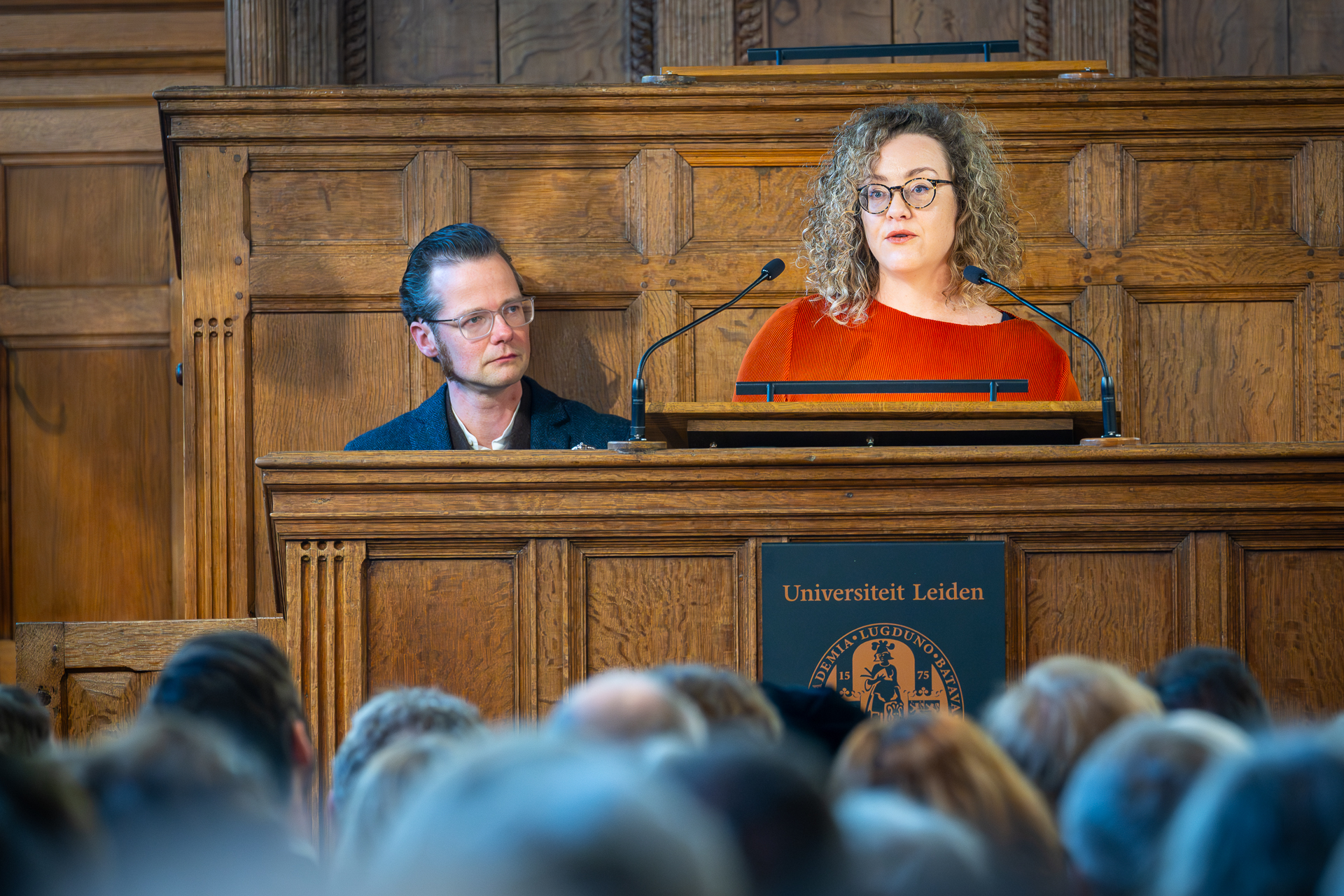 Rechts Sarah de Rijcke, de komende nieuwe Leidse rector