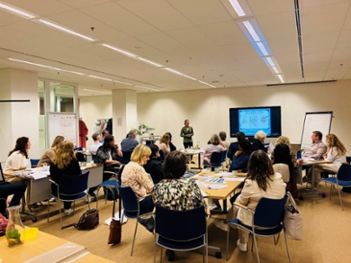‘Ik heb een serious game, genaamd 'Leiderschap zonder Grenzen', ontwikkeld om daarover in gesprek te gaan. Aan de hand van stellingen op kaartjes gaan collega’s in het netwerk praten over wat goed en minder goed gaat. Zo wordt duidelijk waar de knelpunten zitten en welk leiderschap nodig is om het netwerk verder te brengen. Ze gaan nadenken over wat ze willen bereiken en hoe ze leiderschap willen inzetten.’