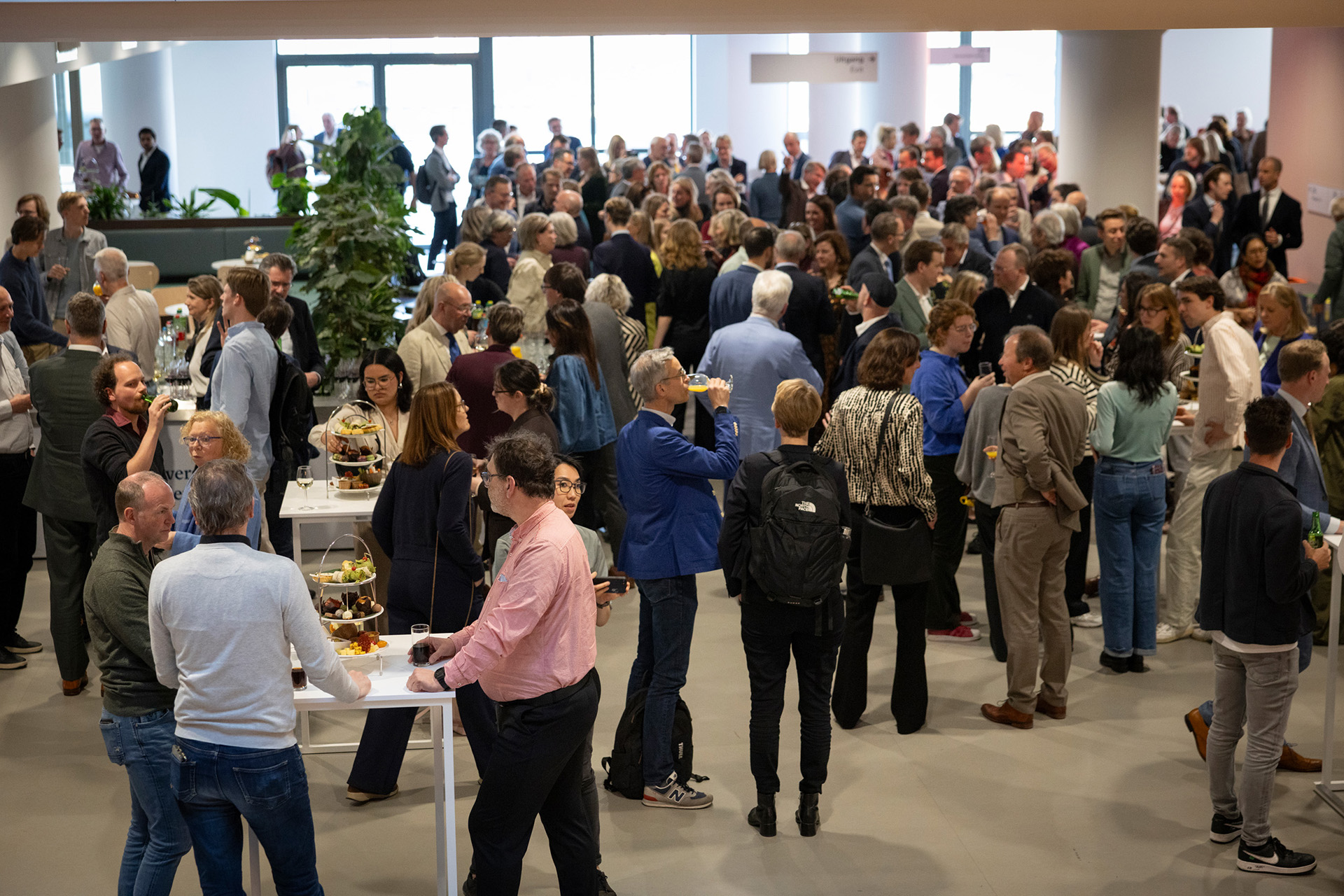 Na het officiële gedeelte werd er natuurlijk geproost op de samenwerking én het nieuwe gebouw. Ook kon iedereen met eigen ogen alles bekijken tijdens de drukbezochte rondleidingen. Zo leidde Olaf van Vliet, hoogleraar Economie, bezoekers rond in de vleugel van zijn afdeling van de Universiteit Leiden. ‘Het is geweldig om in dit nieuwe gebouw te werken, les te geven en samen te werken.’