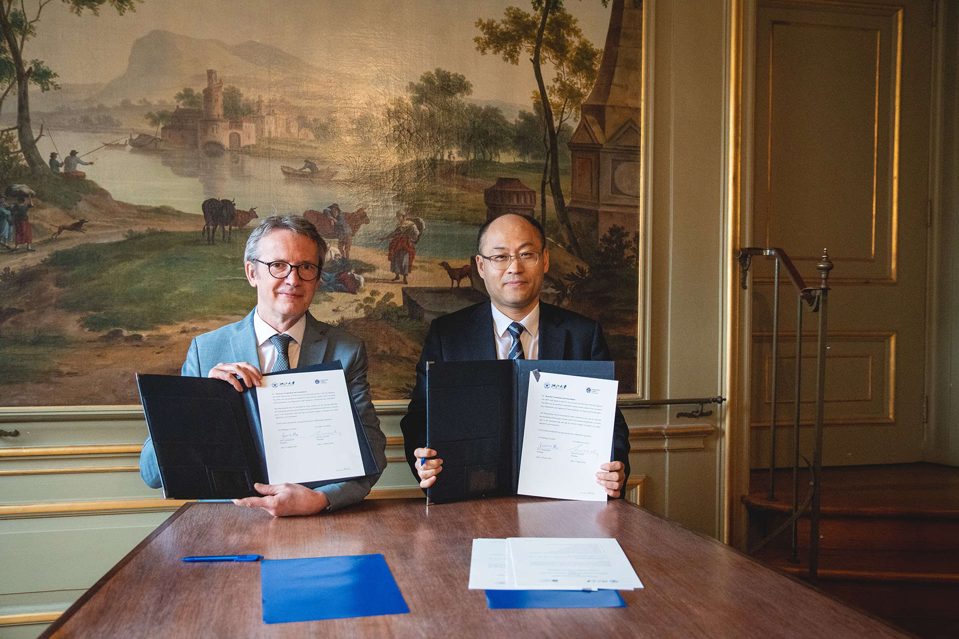 Luc Sels en Yanming Ma ondertekenden een samenwerkingsovereenkomst die mogelijkheden voor studentenuitwisseling creëert. -