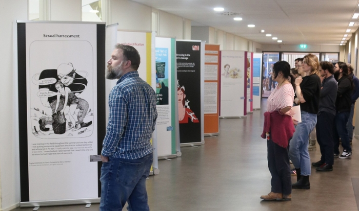Tijdens de opening sprak promovendus en D&I‑commissielid Miyuki Kerkhof over de urgentie van het zichtbaar maken van ervaringen die te lang zijn genegeerd. ‘Deze getuigenissen zijn niet bedoeld om te shockeren, maar om erkenning te geven aan ervaringen die te vaak zijn geminimaliseerd of weggewuifd. De tentoonstelling vraagt niet om ons medelijden. Ze vraagt om onze aandacht, onze solidariteit, onze moed én onze bereidheid om te veranderen.’