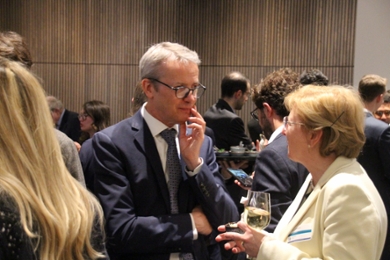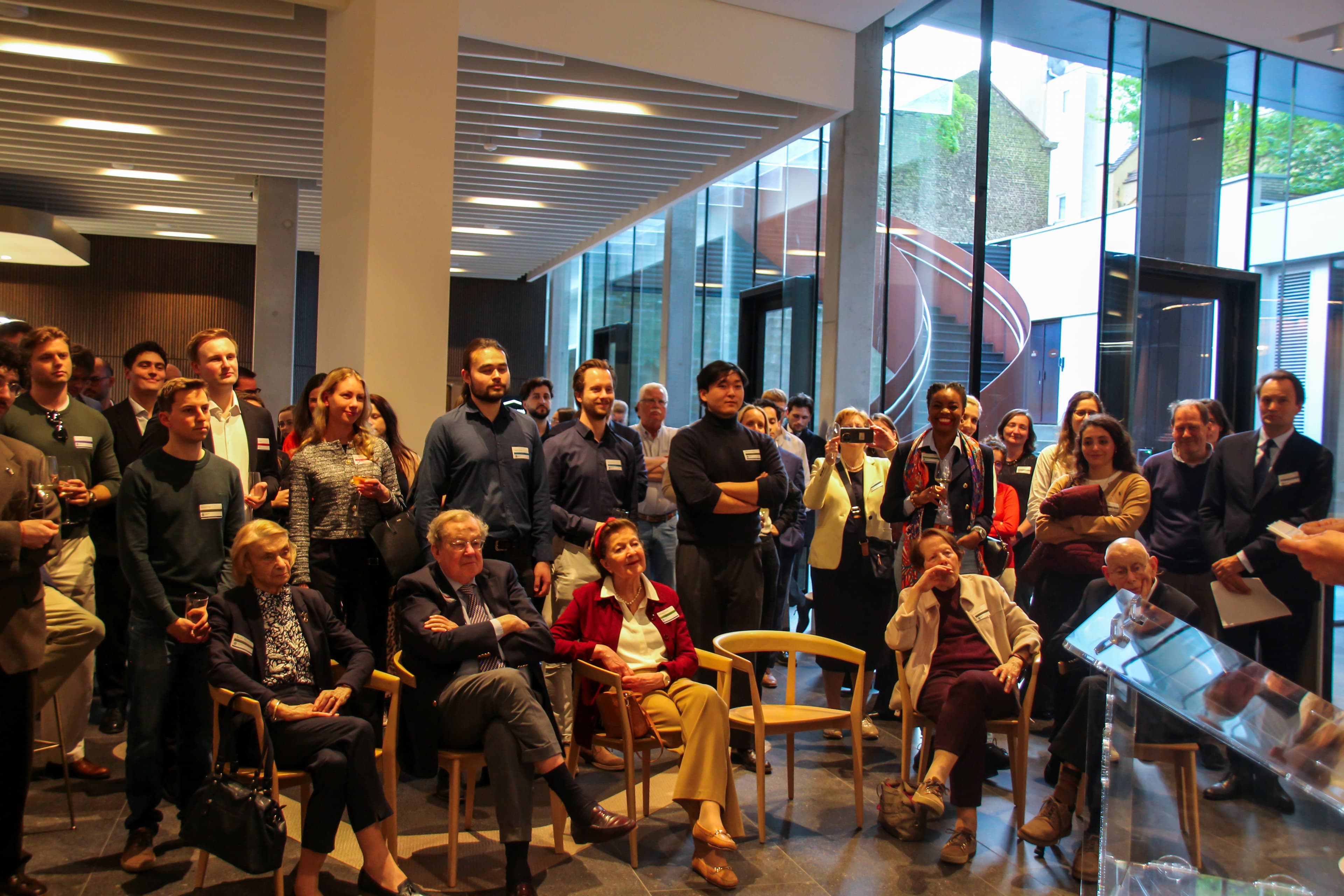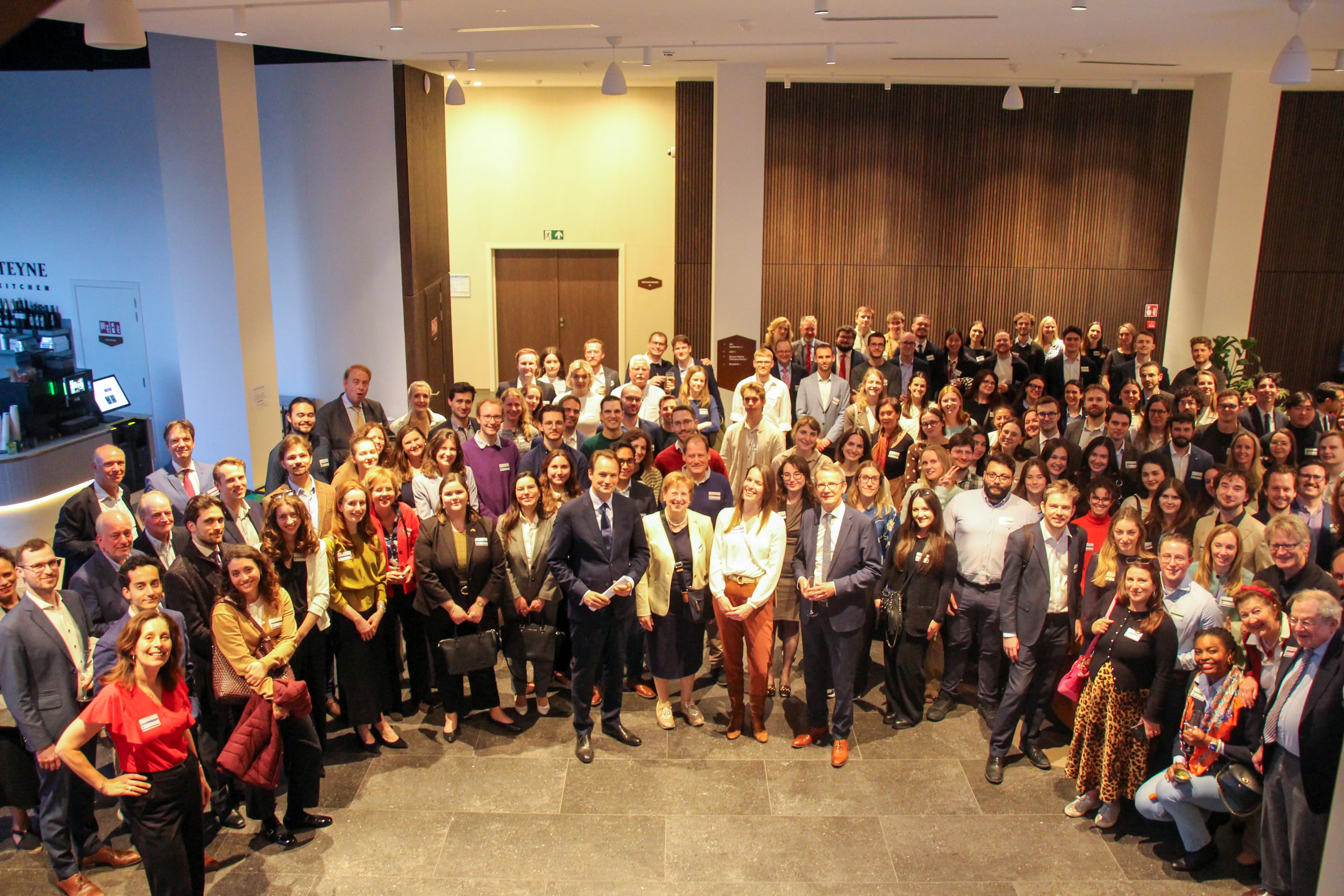 De bijeenkomst in Brussel is een samenwerking vanuit het centrale alumnibureau van de Universiteit Leiden met de faculteiten Geesteswetenschappen, Rechtsgeleerdheid, Governance and Global Affairs en de opleiding Politieke Wetenschap. Dit jaar bood het Brusselse kantoor van advocatenfirma King & Spalding een prachtig onderkomen in de lobby van de nieuwe Louisa Tower.