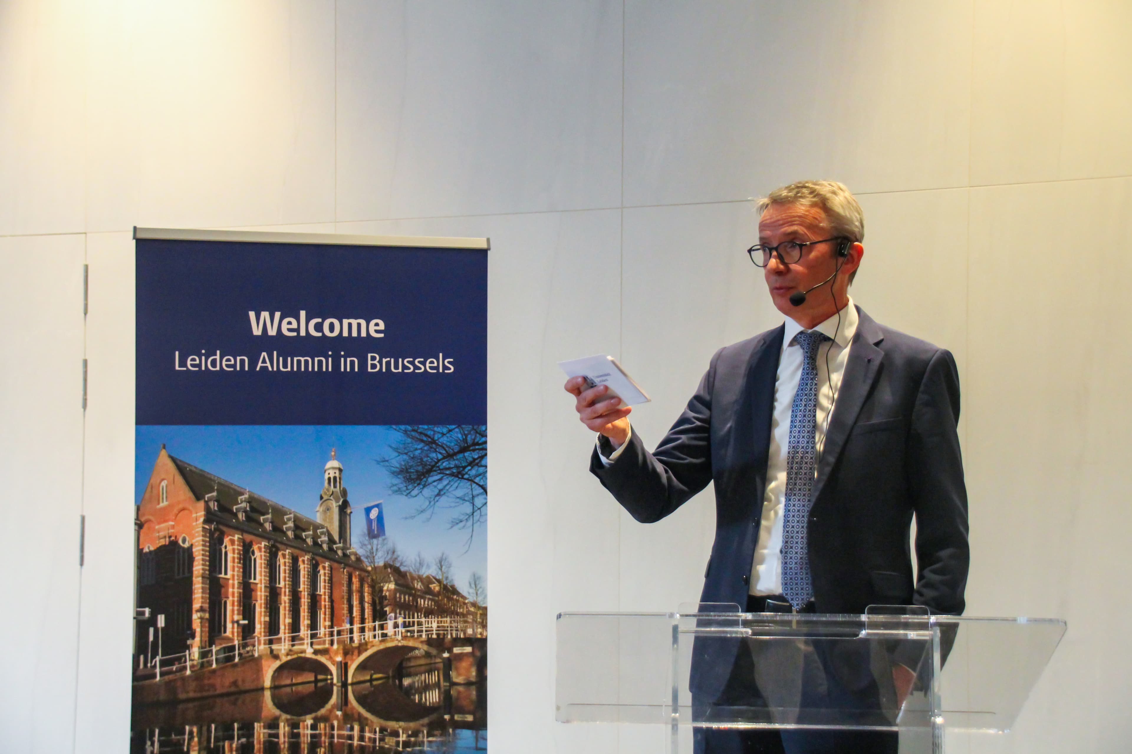 Maar liefst 180 alumni van de Universiteit Leiden kwamen afgelopen week samen in Brussel. Een internationaal, jong en divers gezelschap ontmoette elkaar en luisterde aandachtig naar toespraken van CvB-voorzitter Luc Sels en NAVO-stafchef en alumnus Geoffrey van Leeuwen.