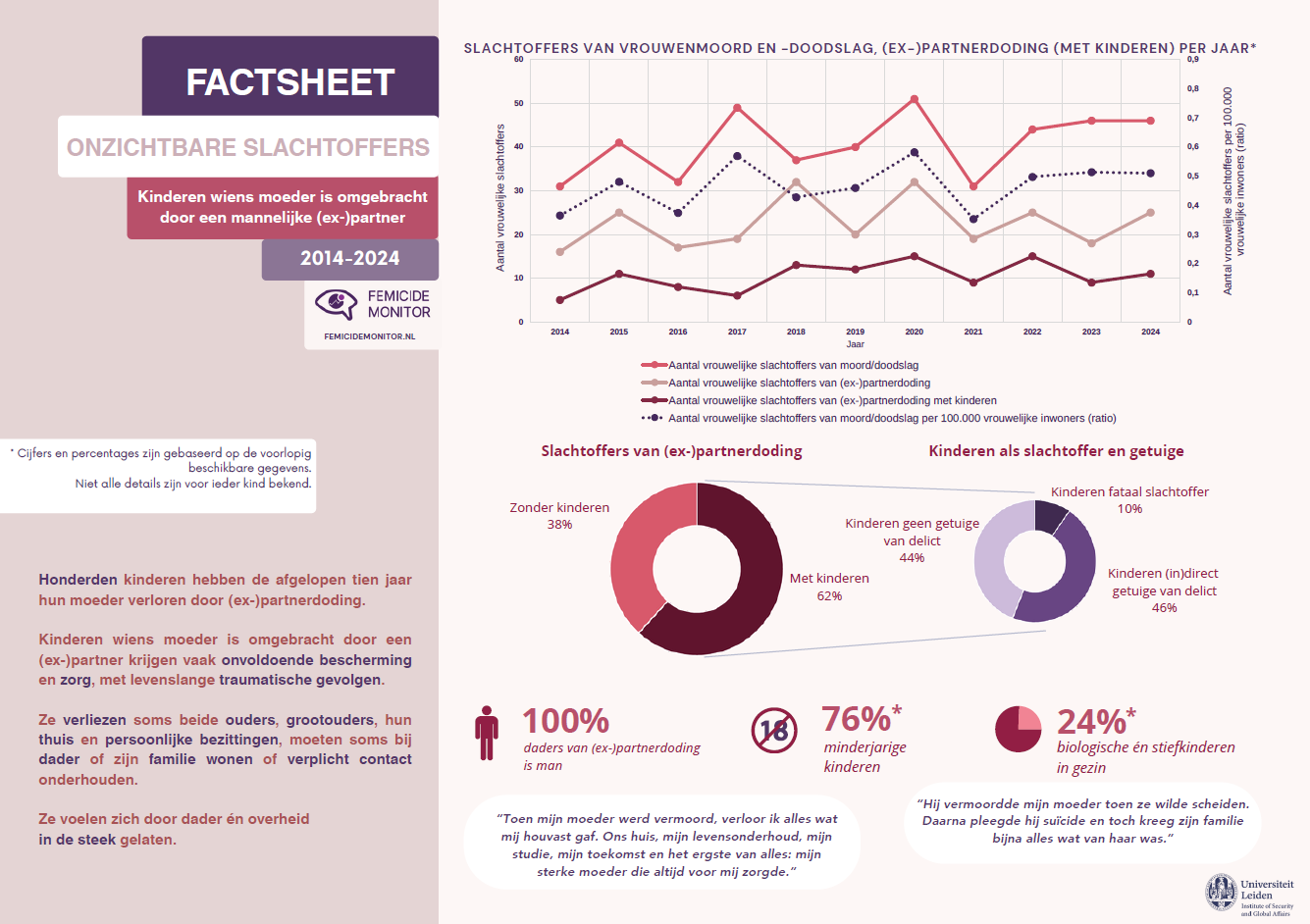 De Femicide Monitor is officieel gelanceerd op 3 april 2025. In de kolom rechts vindt u de Factsheet Femicide waarin de eerste bevindingen uit de Monitor worden samengevat.