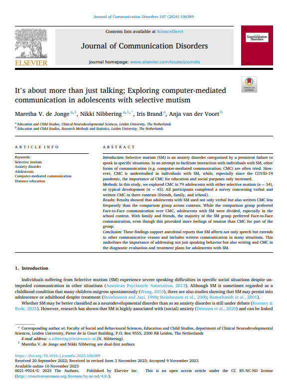 Hoe gebruiken en ervaren jongeren met selectief mutisme digitale communicatie: geschreven of gesproken via apps, games, mail, videocalls?