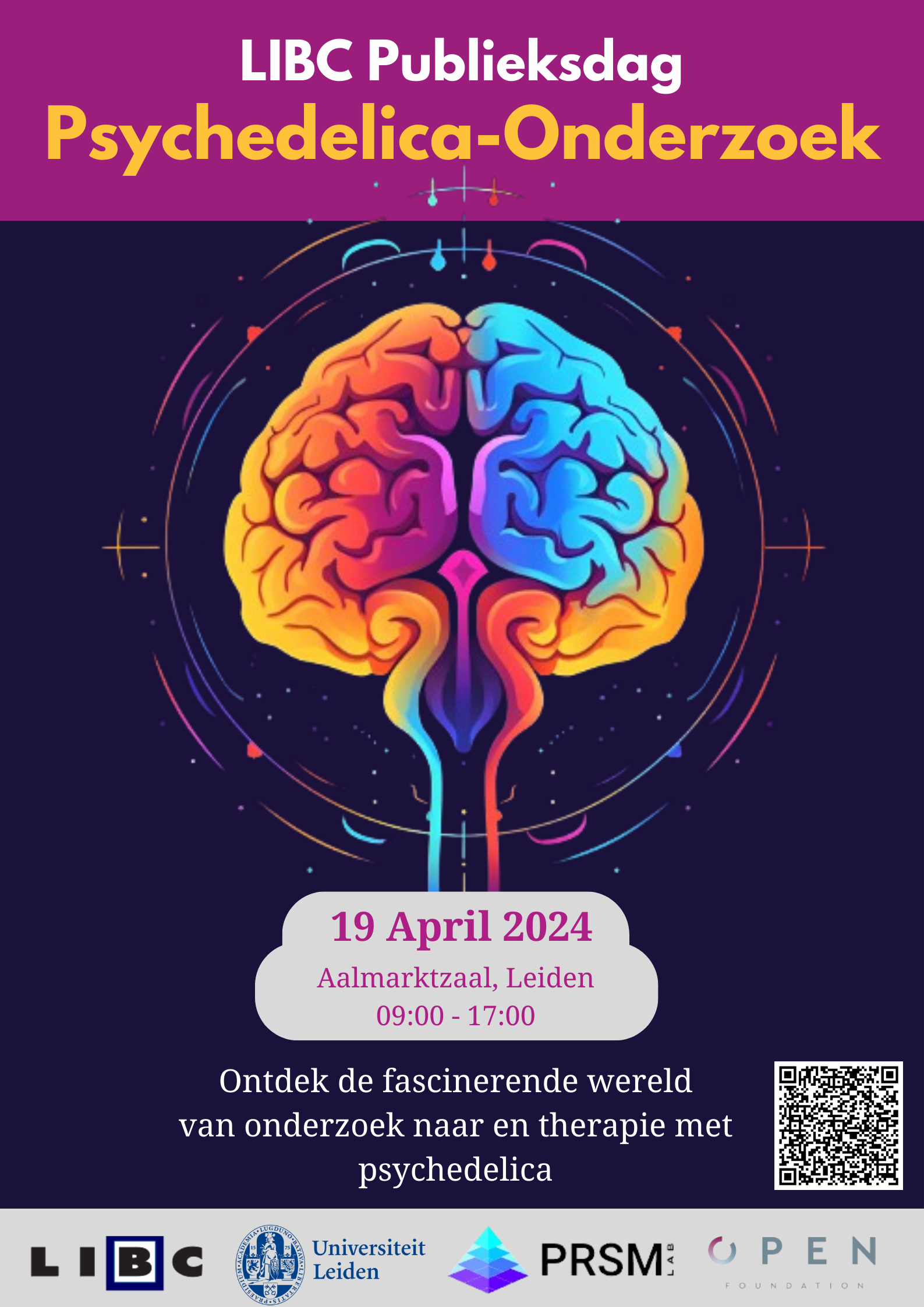 Deze Publieksdag bood een nuchtere en gebalanceerde blik op (neuro)wetenschappelijk onderzoek naar psychedelica. De sprekers belichtten het onderwerp vanuit hun eigen expertise en achtergrond. Daarbij kwamen verschillende vragen aan bod zoals: Wat gebeurt er nu precies in je brein onder invloed van psychedelica? Wat zijn de effecten van psychedelica op onze waarneming en emoties? Wat is de huidige stand van het onderzoek naar therapeutische toepassingen van psychedelica?